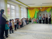 Традиционно в нашем детском саду состоялось праздничное мероприятие, посвящённое Дню знаний для ребят старших групп. И, как полагается, начало мероприятия началось с прослушивания гимна. Затем наша заведующая Бахыт Сабыровна поздравила детей с началом нового учебного года.